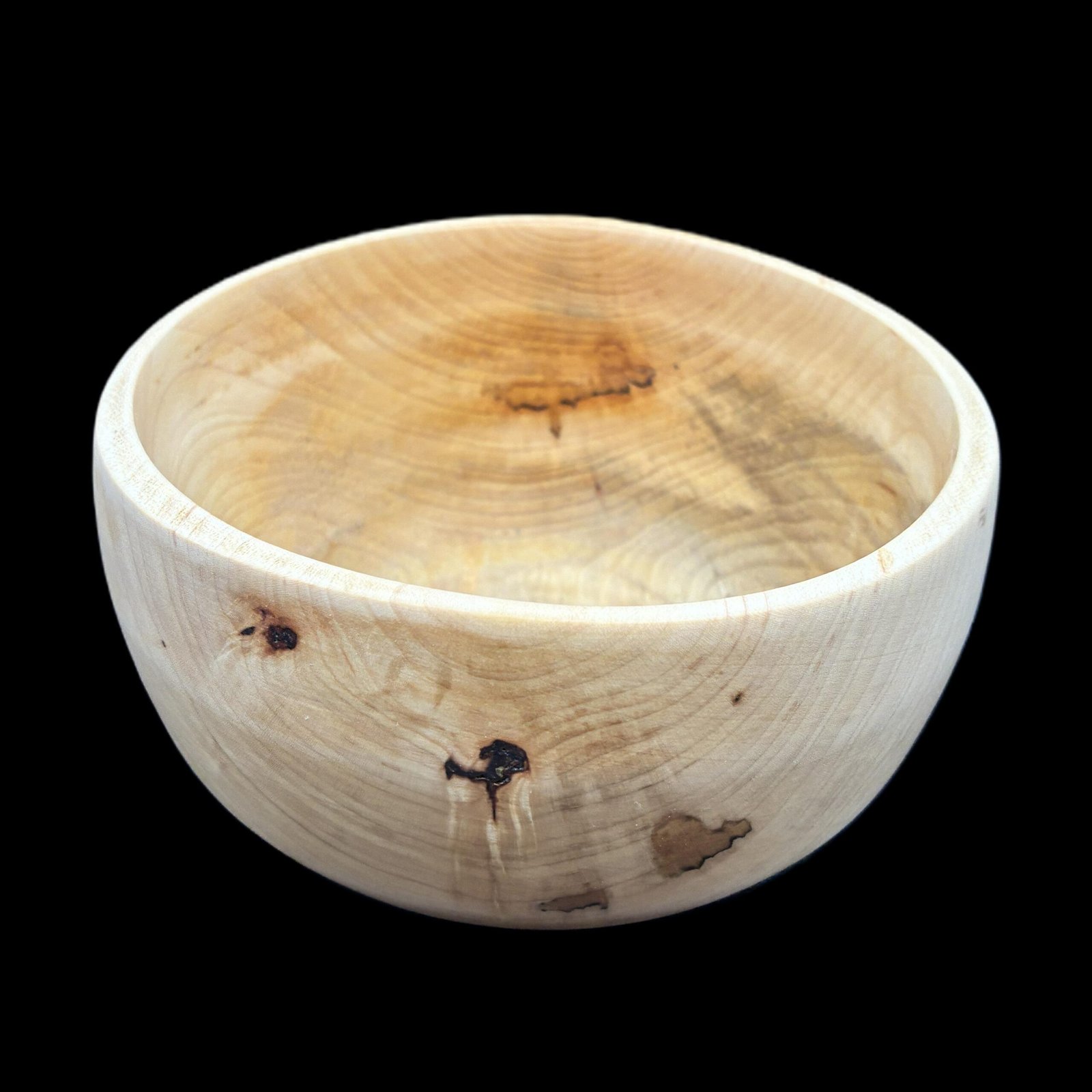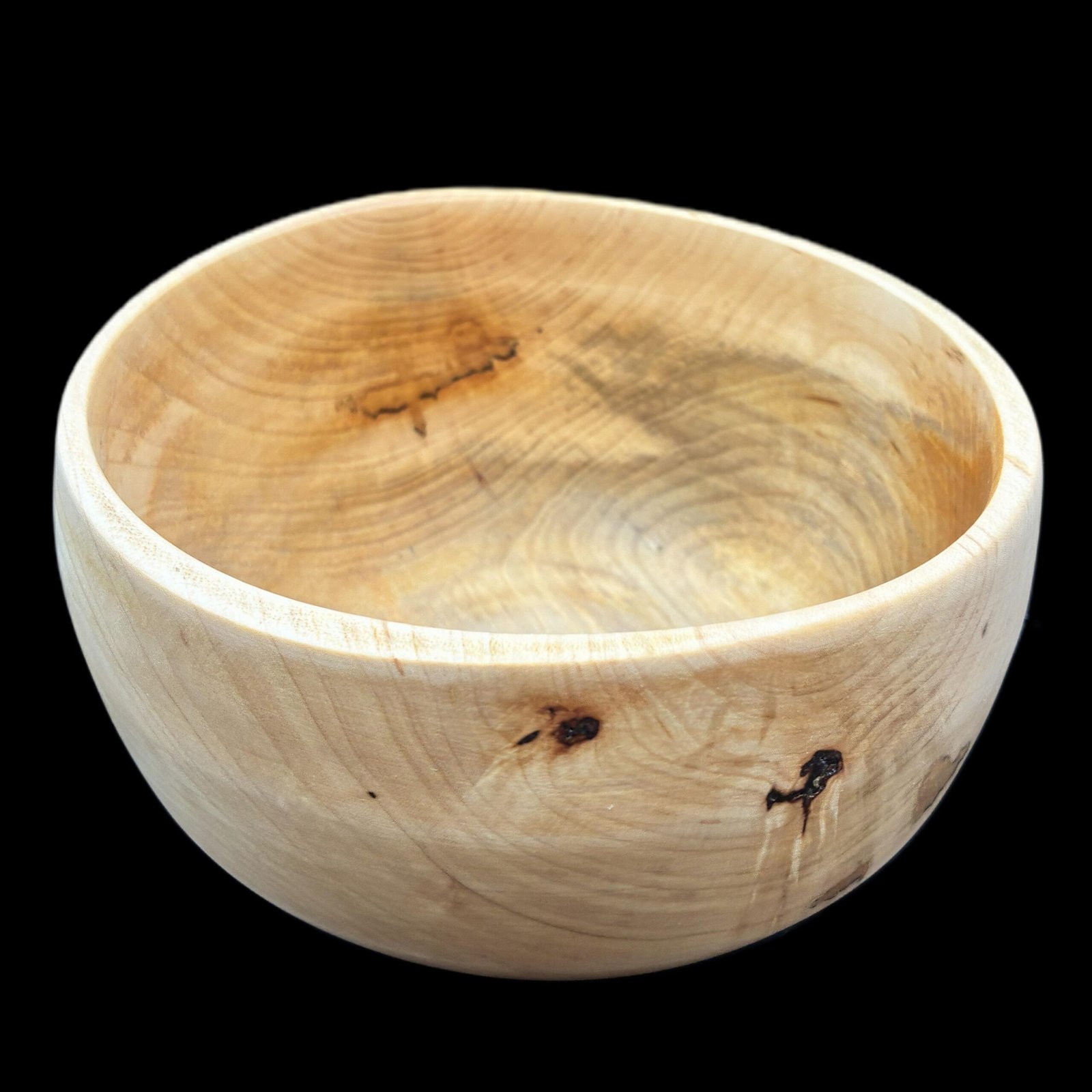 Hand-turned ash bowl showcasing natural knots and warm grain variations. Finished with food-safe oil and wax, crafted in Lawrenceburg, Kentucky.