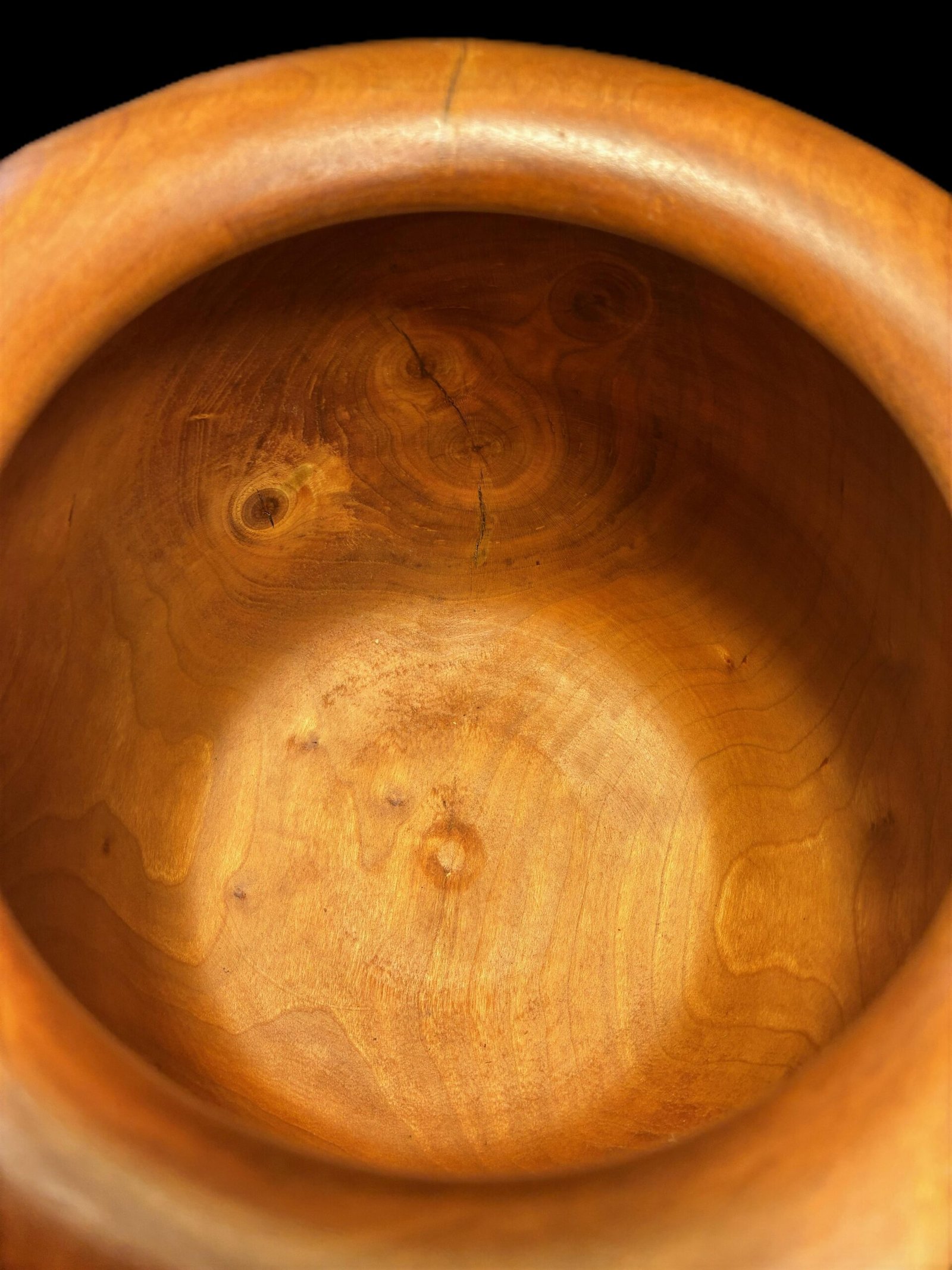 This hand-turned vessel captures the elegance and simplicity that define Lawson Handcrafts. The solid hardwood body features flowing grain lines and a smooth, rounded form that highlights the natural beauty of the wood itself.